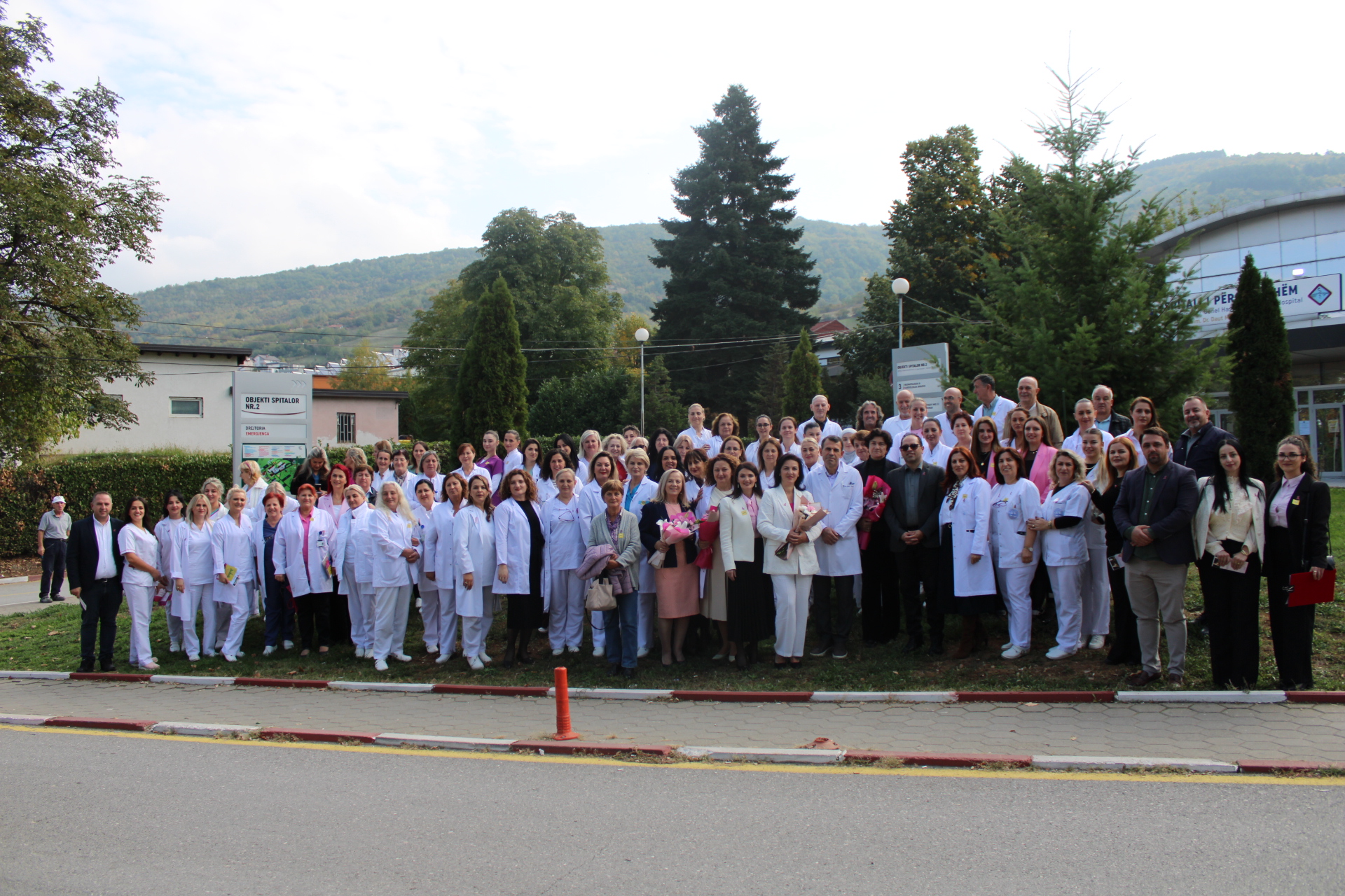Aktualisht ka 730 të punësuar, prej tyre 169 mjekë specialistë, 438 infermierë (bachelor, mësimdhënës, teknikë të farmacisë), si dhe 123 staf tjetër (administrative, teknike etj.)