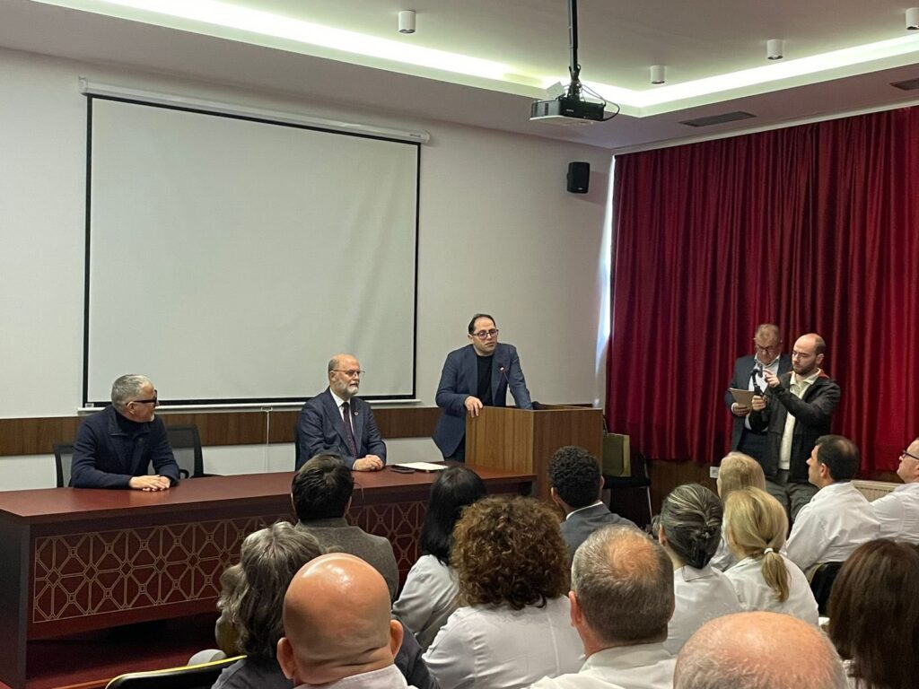 Ambasadori Malaj është pritur nga drejtori ekzekutiv i spitalit, z. Osman Hajdari, së bashku me anëtarët e Këshillit Drejtues, të cilët e kanë njoftuar atë me gjendjen aktuale, të arriturat dhe objektivat e institucionit.